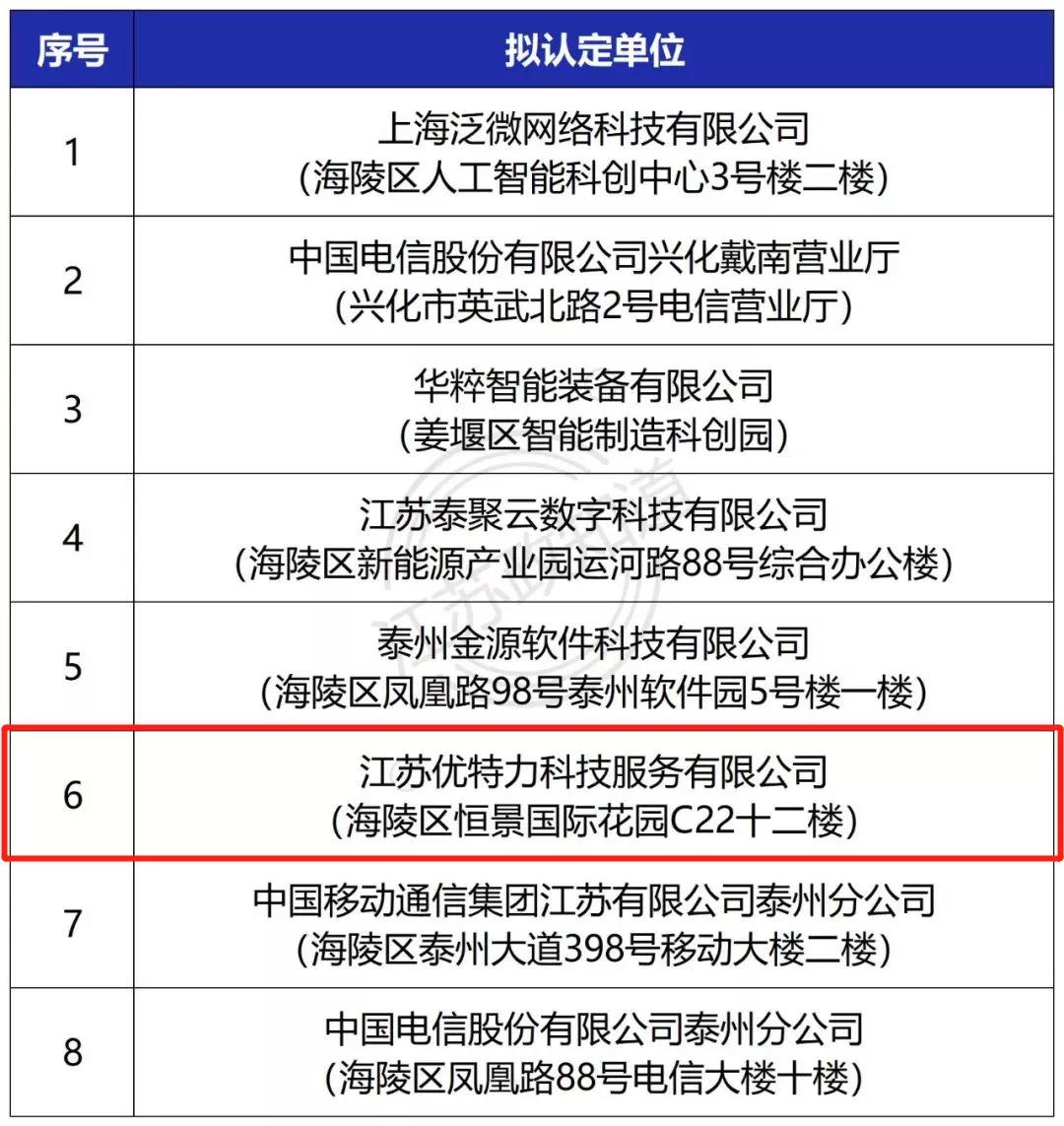 為促進全市中小企業數字化轉型,加快培育數字化轉型生態,幫助中小企業提升轉型能力、降低轉型成本、縮短轉型周期,泰州市開展了數字化轉型促進中心評定工作,經專家評審和現場考察,江蘇優特力科技服務有限公司成功入選。未來,優特力科技將立足泰州,為賦能企業數字化轉型貢獻自己的一份力量。