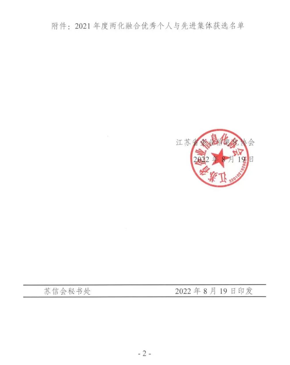根據江蘇省工信廳關于兩化融合重點工作的部署,江蘇省企業信息化協會組織開展了2021年度兩化融合優秀個人與先進集體評選工作。經過材料申報、專家評審等多個環節后,現將獲選名單予以公示。