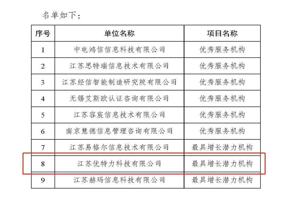 優特力科技始終堅持“本質貫標”的服務宗旨,不斷加強和完善自身工作。在2021年度兩化融合優秀個人與先進集體評選工作中被評選為“兩化融合貫標最具增長潛力機構”!