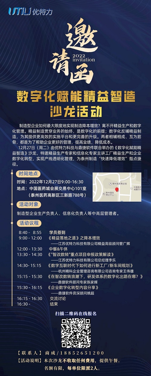 【公益活動】“數字化賦能精益智造”沙龍邀請函
