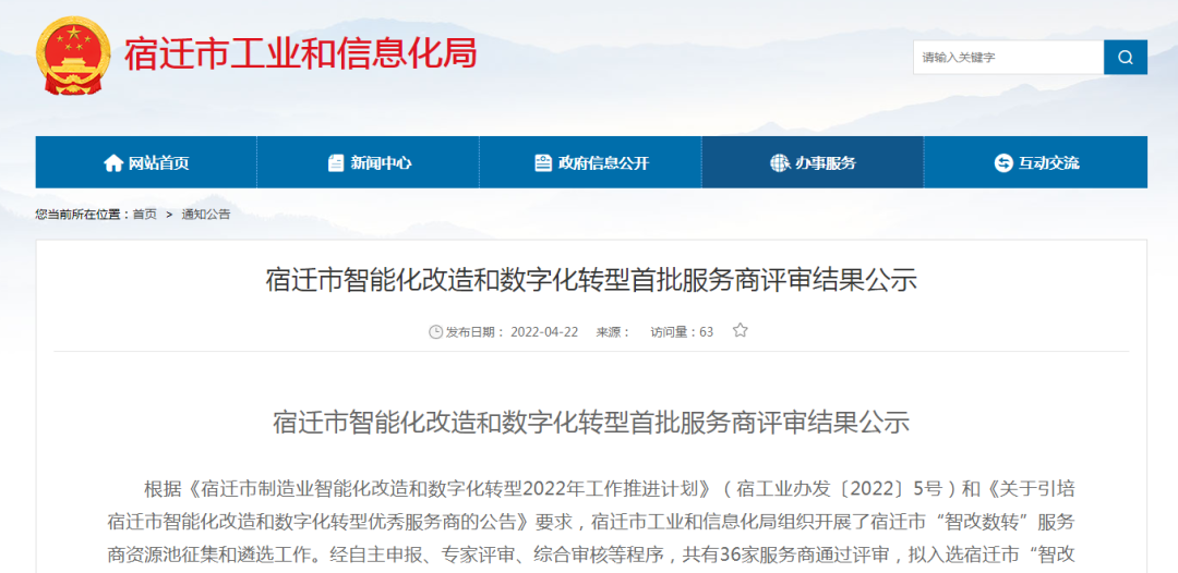 近日,宿遷市工業(yè)和信息化局公布了宿遷市首批“智改數(shù)轉(zhuǎn)”服務(wù)商入選名單,江蘇優(yōu)特力科技服務(wù)有限公司成功入選。此次入選,標(biāo)志著優(yōu)特力“智改數(shù)轉(zhuǎn)”能力得到宿遷市工業(yè)信息化部門(mén)的高度認(rèn)可。